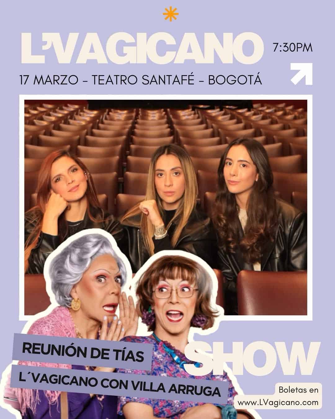 Prepárate para una noche llena de risas y diversión en Bogotá con el espectáculo ‘L’VAGICANO – REUNIÓN DE TÍAS – L’VAGICANO CON VILLA ARRUGA SHOW’. Este evento de comedia, protagonizado por los talentosos L’Vagicano y Villa Arruga, promete ser una experiencia inolvidable. No te pierdas este show lleno de humor y diversión en el Teatro Santafé. ¡Te esperamos!