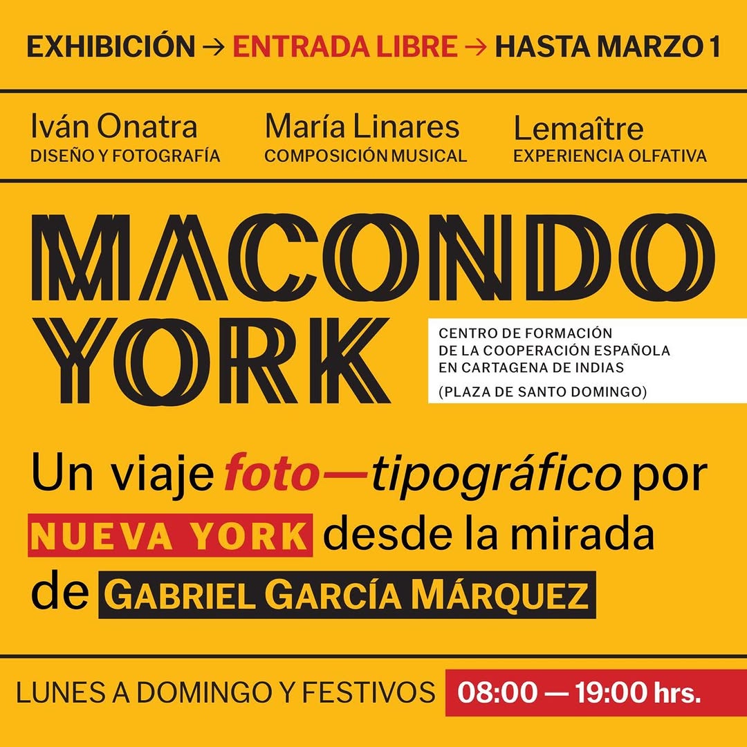 MACONDO YORK es una exhibición inmersiva en Cartagena que propone un viaje foto-tipográfico por Nueva York desde la mirada de Gabriel García Márquez. El proyecto reúne diseño y fotografía de Iván Onatra, composición musical de María Linares y una experiencia olfativa creada por Lemaître, generando un recorrido sensorial que mezcla literatura, imagen y sonido. Un plan cultural ideal para quienes buscan arte contemporáneo y narrativa visual en el Centro de Formación de la Cooperación Española.