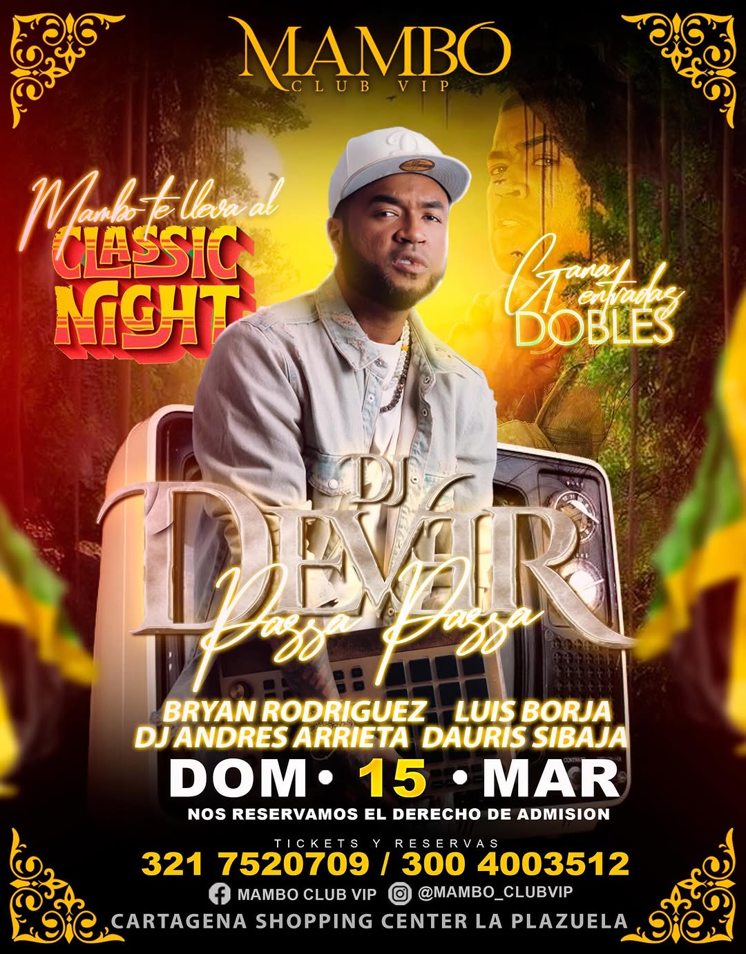 Mambo Killara al Classic Night – El Devar Bossa Party llega a Mambo Club VIP en Cartagena con una noche dedicada a los clásicos y a la bossa. En esta fiesta tipo concierto se reúnen artistas como Gana y Guztada Dobles, Bryan Rodriguez, Luis Borja, DJ Andres Arrieta y Dauris Sibaja para ofrecer una experiencia musical elegante y bailable. Un plan ideal para quienes disfrutan de sonidos clásicos y ambiente de club en Cartagena.