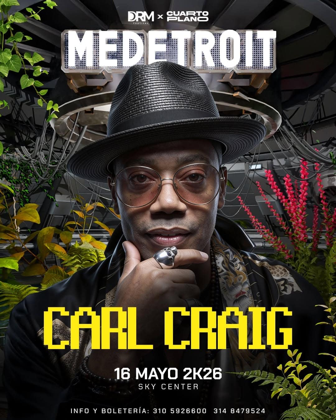 MEDETROIT es un evento musical único en Medellín que celebra la conexión entre la ciudad y Detroit, a través de la música electrónica. El evento contará con la presencia del reconocido artista Carl Craig, arquitecto del sonido de Detroit, quien ha marcado décadas de evolución entre el techno, el jazz y la electrónica experimental. Este concierto es una oportunidad para experimentar una forma de pensar la música: con profundidad, elegancia y visión.