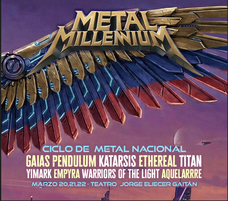 En un ambiente cargado de energía y pasión, el METAL MILLENNIUM promete un viaje sonoro inolvidable. Durante tres noches épicas, se reunirán algunas de las bandas más poderosas del metal nacional: GAIS PENDULUM, KATARSIS, ETHEREAL, TITÁN, YIMARK, EMPYRA, WARRIORS OF THE LIGHT y AQUELARRE. Cada acorde resonará como un grito de libertad, cada riff te envolverá en una atmósfera electrizante. Este ciclo es más que un concierto; es una celebración de la cultura metalera que une a los fanáticos en una experiencia vibrante y auténtica. ¡No te lo puedes perder!