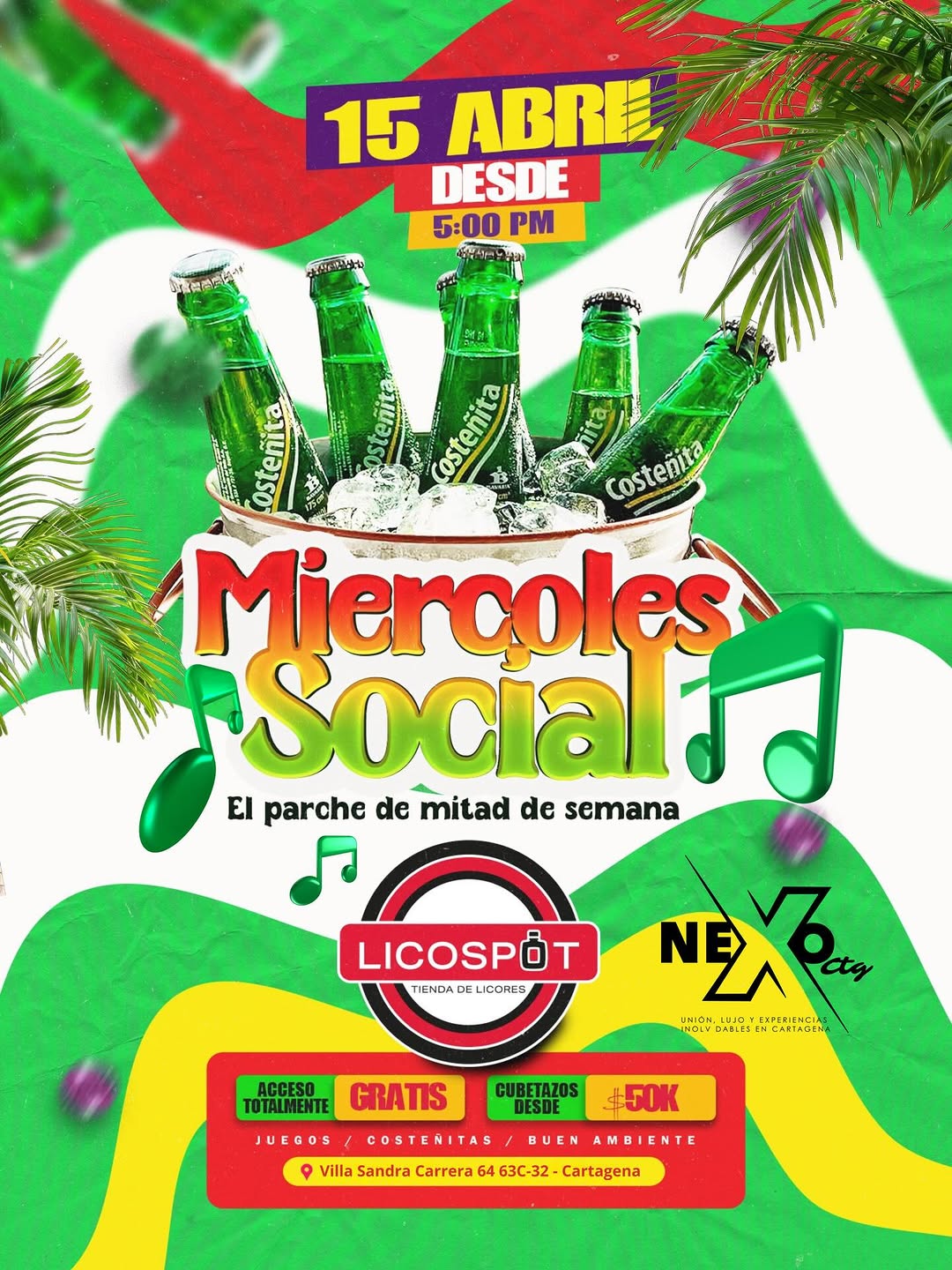 Miércoles Social es el parche perfecto de mitad de semana en LICOSPOT, Cartagena. Este evento social combina juegos, buena música y el sabor de las Costeñitas para que te desconectes de la rutina y compartas con amigos en un ambiente relajado y divertido. Ideal para quienes buscan un plan after office diferente y animado en la ciudad.