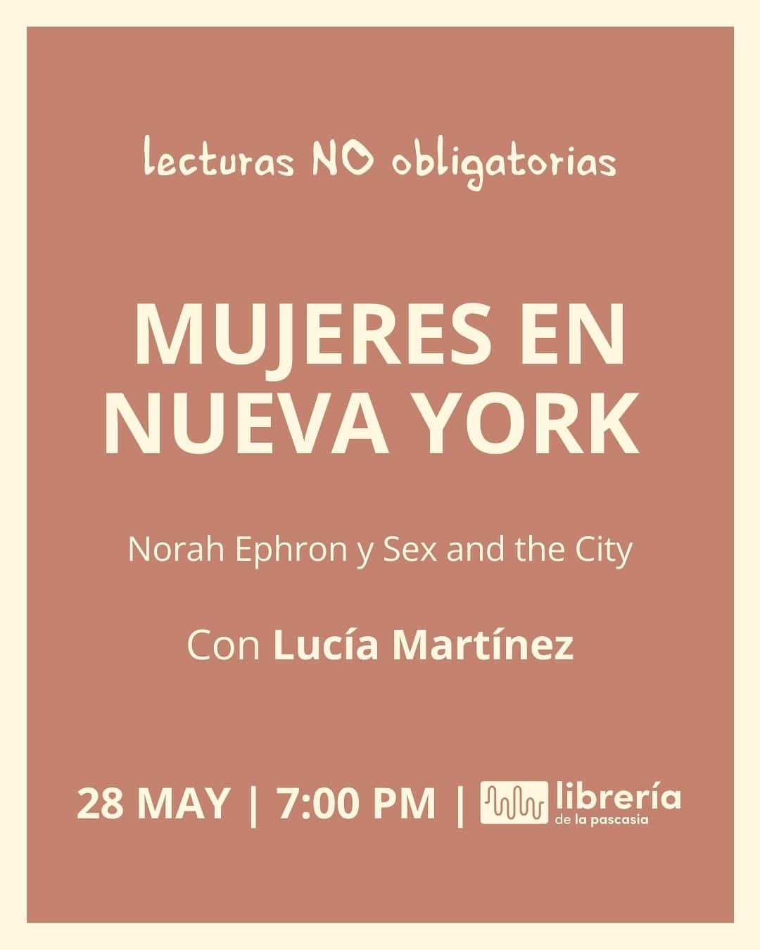 Haremos una inmersión en la prosa inteligente y honesta de Nora Ephron en sus obras “No me gusta mi cuello” y “No me acuerdo de nada” y en la mirada audaz de Carrie Bradshaw, presente en su icónica columna “Sex and the City”.