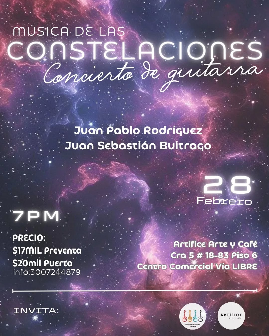 Música de las Constelaciones es un concierto de guitarra de cámara donde el repertorio se inspira en la inmensidad del cosmos. Juan Pablo Rodríguez y Juan Sebastián Buitrago, del colectivo Tempo 18, proponen una experiencia íntima que combina técnica, sensibilidad y emoción. En Artifice Arte y Café, en Bogotá, la guitarra se convierte en protagonista de una noche contemplativa ideal para amantes de la música clásica y latinoamericana que buscan un encuentro cercano con los artistas.