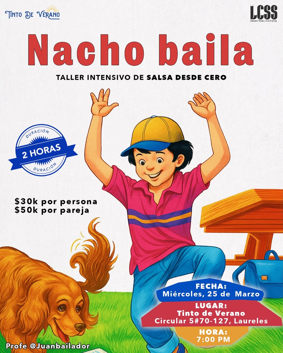 Nacho baila es un taller intensivo de salsa básica en Medellín, ideal para quienes quieren dejar de quedarse sentados en las fiestas y empezar a disfrutar la pista. Durante dos horas, el profe Juanbailador guía paso a paso desde cero, creando un ambiente relajado y divertido en Tinto de Verano. Es una actividad perfecta para aprender técnica, ganar confianza y compartir con otras personas aficionadas al baile en la ciudad.