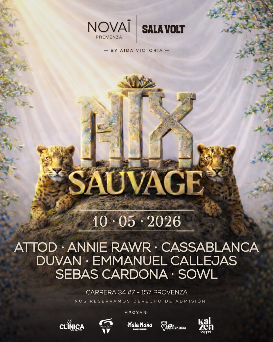 NIX SAUVAGE regresa el 10 de mayo como una experiencia inmersiva que une música electrónica, visuales y propuesta gastronómica en Novaï Provenza Sala Volt, en Medellín. Con un line up de DJs como Attod, Annie Rawr, Cassablanca, Duvan, Emmanuel Callejas, Sebas Cardona y Sowl, este evento tipo clubbing promete una noche intensa y salvaje para amantes de la fiesta y la cultura nocturna en la ciudad.