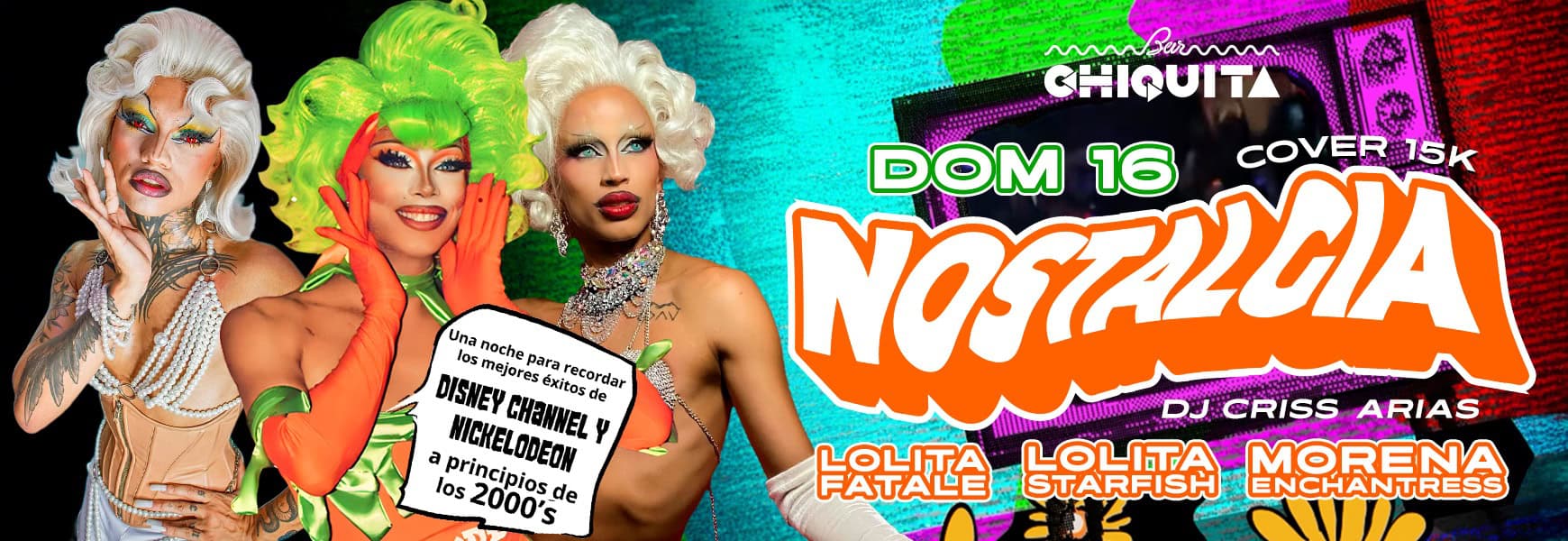 Con los shows de Lolita Fatale, Lolita Starfish y Morena Enchantress, y la música de DJ Criss Arias para cantar y bailar como en tu infancia.