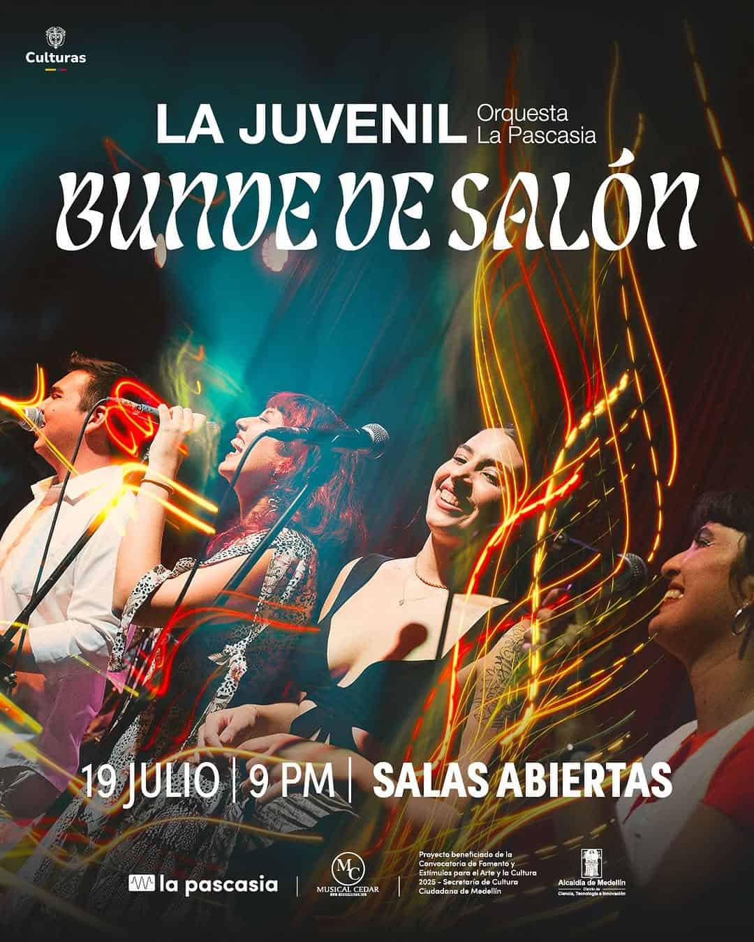 ¡Prepárate para vivir una experiencia única en Medellín! La reconocida Orquesta La Pascasia presenta: BUNDE DE SALÓN el 19 de julio a las 9:00 PM en un evento lleno de ritmo y sabor. Aunque la palabra Bunde tiene diversos significados, en esta ocasión nos transportará a una celebración callejera del Chocó, adaptada al salón. Disfruta de la música del Pacífico colombiano en un formato de orquesta tropical, con toques de mambo y bolero que te harán vibrar. ¡No te pierdas esta oportunidad de disfrutar de una noche llena de tradición y alegría en la hermosa ciudad de Medellín!
