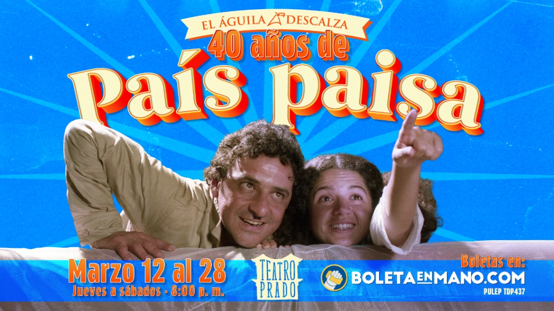 En 2026, El Águila Descalza celebra los 40 años de “País paisa”. Compra tus entradas y forma parte de los festejos por estos 40 años de risas, memoria e identidad.