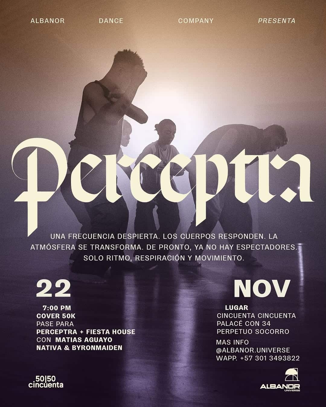 No te pierdas la experiencia única que ofrece Perceptra, un performance inmersivo el sábado 22 de noviembre de 2025. En el icónico CINCUENTA CINCUENTA, a partir de las 19:00, serás parte de un viaje donde luz, sonido y movimiento se entrelazan. Esta experiencia transformará tus sentidos y te invitará a sentir el pulso colectivo en una atmósfera vibrante. Con las actuaciones de Fiesta House, Matias Aguayo y Nativa & Byronmaiden, prepárate para una celebración que va más allá de lo ordinario, abriendo las puertas a un universo de energía compartida.