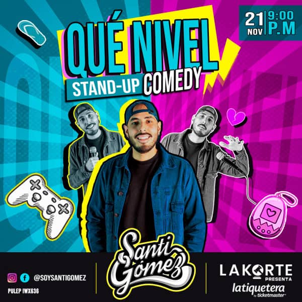 ¡Qué Nivel! es un espectáculo de standup comedy que promete risas sin parar. Santi Gómez, un talentoso comediante con más de 7 años de experiencia en la comedia y 10 en la cuentería, te llevará a un viaje hilarante a través de anécdotas que todos recordamos: desde el chocorramo a 500 pesos hasta los desafíos de las relaciones modernas. Este show es la cita perfecta para quienes buscan una noche llena de humor y conexión. Ven y vive la experiencia de reírte a carcajadas en un ambiente único el viernes 21 de noviembre de 2025 en La Korte. ¡No te lo puedes perder!