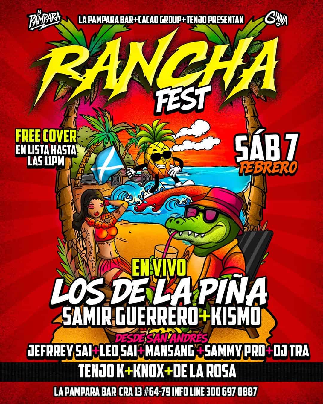 Prepárate para el RANCHA FEST en La Pampara Bar. Un festival de música regional mexicana y rancha que contará con la presencia de artistas como Los De La Pina, Samir Guerrero, Kismo, entre otros. Además, disfruta de DJs y artistas invitados directamente desde San Andrés. No te pierdas esta noche llena de música y diversión.
