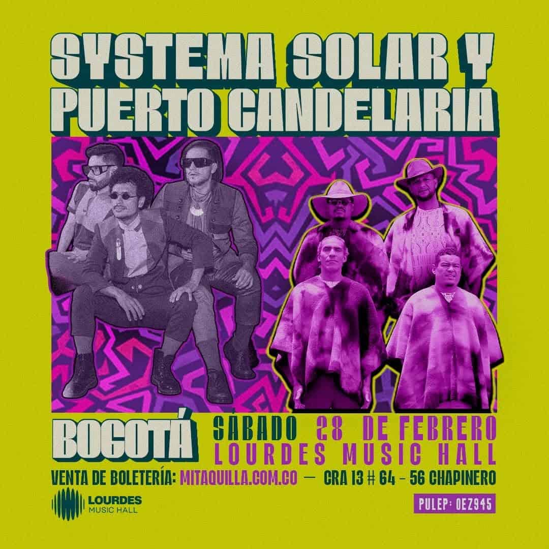 Disfruta de una noche llena de ritmo y sabor en Bogotá con el concierto de Systema Solar y Puerto Candelaria. Este evento se llevará a cabo en Lourdes Music Hall, un lugar reconocido por su ambiente vibrante y acogedor. No te pierdas la oportunidad de vivir una experiencia musical inolvidable con estos dos grandes exponentes de la música Latina/Tropical.
