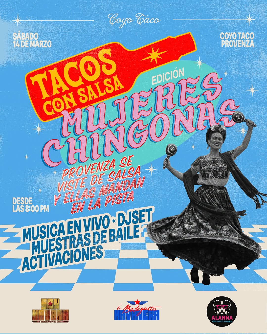 Tacos con Salsa – Edición Mujeres Chingonas llega a Coyo Taco Provenza para rendir homenaje a las mujeres con una noche de música en vivo, DJ set, baile y activaciones especiales en Medellín. Este evento de salsa y ritmos latinos crea una atmósfera festiva ideal para disfrutar entre amigas, con un menú especial para ellas y una experiencia que mezcla gastronomía mexicana, fiesta y celebración femenina en Provenza.