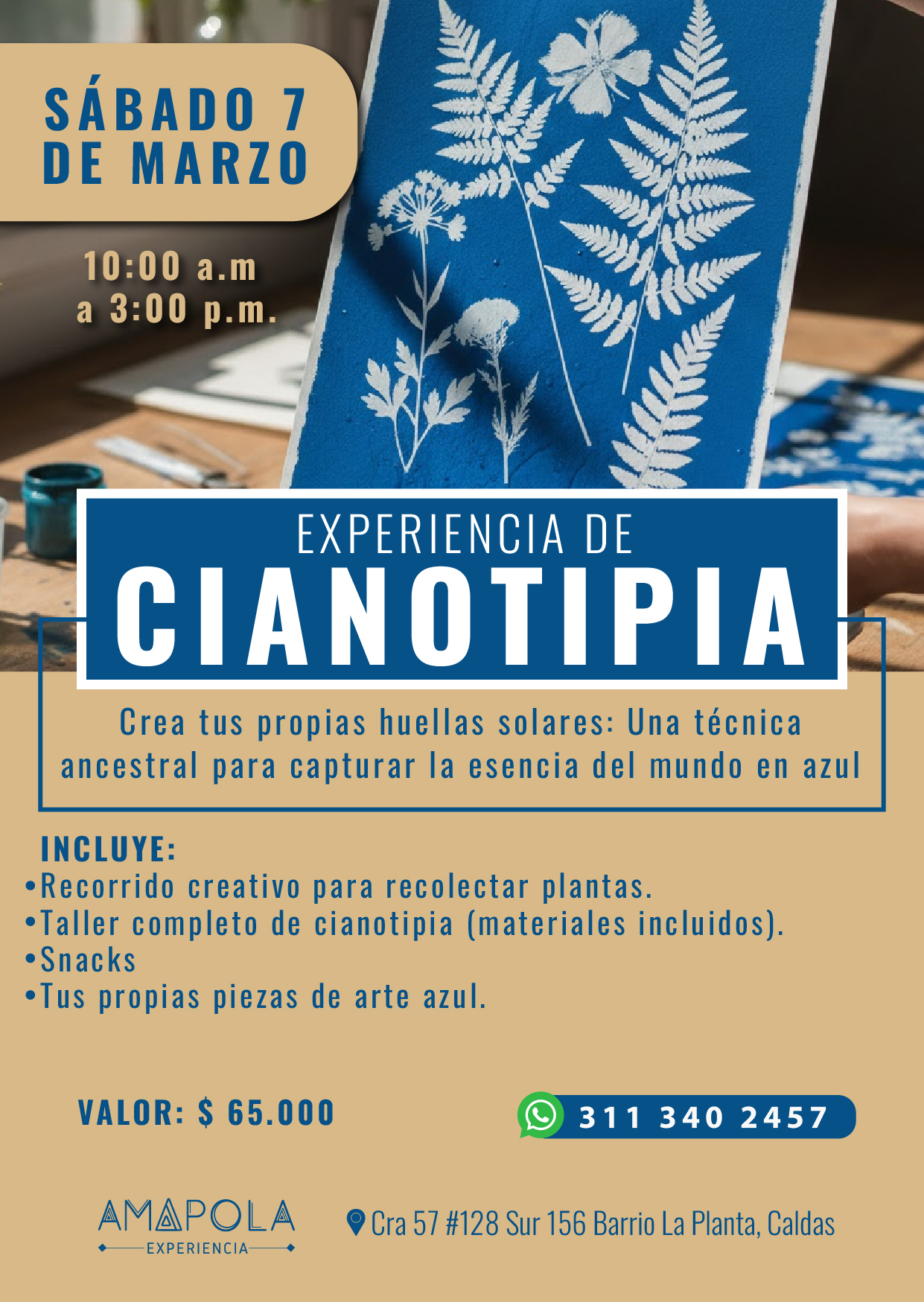 La cianotipia es una técnica fotográfica artesanal que utiliza la luz del sol para revelar imágenes en tonos azul profundo. En este taller aprenderás el proceso básico para crear tus propias piezas utilizando elementos naturales, transparencias o composiciones personales.