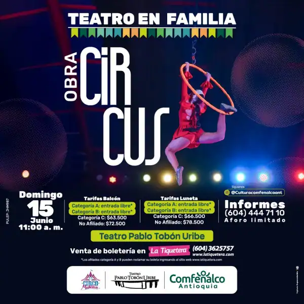 Prepárate para vivir la magia del circo! La Fundación Circo Medellín nos trae un espectáculo imperdible: CIRCUS: malabares, acrobacias, teatro, mimo-clown y mucho más…Todo bajo la dirección de Carlos Álvarez, reconocido artista con más de 30 años de trayectoria. Un mimo-clown que ha llevado el nombre de Medellín por el mundo.