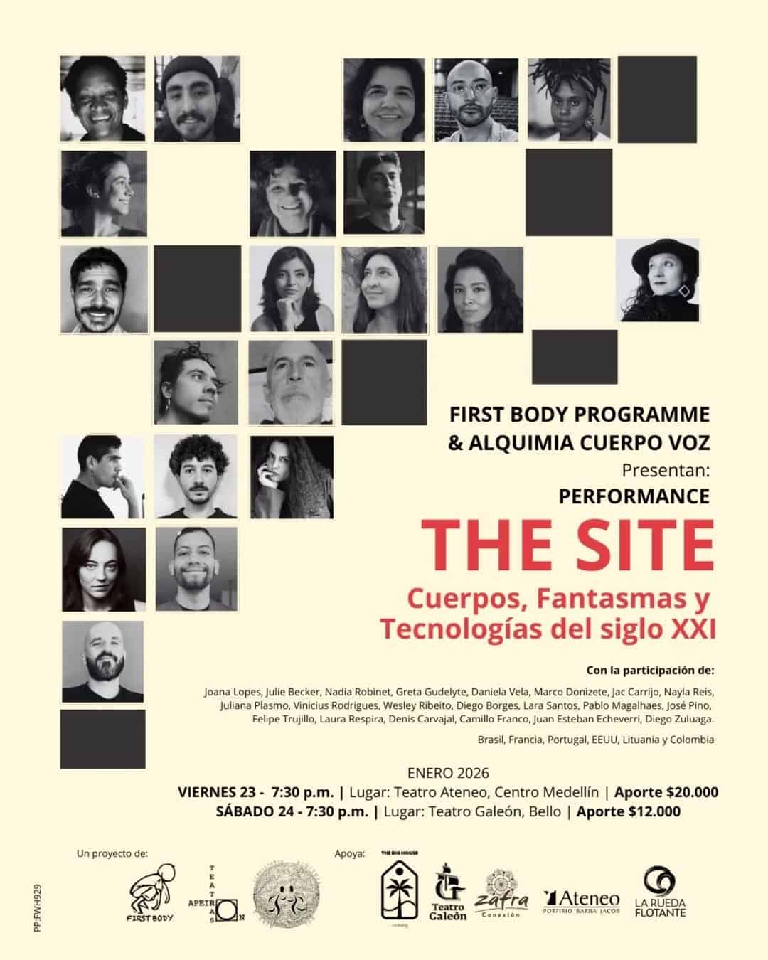 Descubre ‘THE SITE’, una performance única que explora la noción de ‘sitio’ en el contexto de la violencia, la vigilancia y la deshumanización tecnológica del siglo XXI. Este evento, organizado por FIRST BODY PROGRAMME y ALQUIMIA CUERPO VOZ, es el resultado de una residencia artística que contó con la participación de 22 artistas de Brasil, Francia, Portugal, EEUU, Lituania y Colombia. No te pierdas esta experiencia única en Medellín, donde el arte y la tecnología se encuentran para cuestionar y transformar nuestra relación con el espacio y el tiempo.