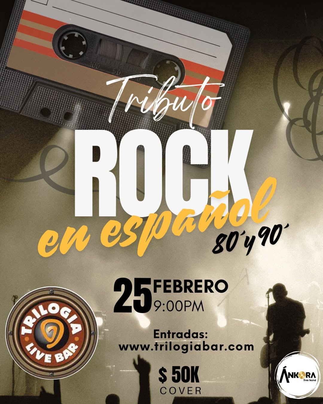 Tributo Rock en español 80′ y 90′ es un concierto tributo donde Ánkora live band revive los clásicos del rock en nuestro idioma de las décadas de los 80 y 90. En Trilogía Live Bar se reunirán los amantes del rock en español para cantar y recordar himnos generacionales en un ambiente íntimo y potente. Un plan ideal para disfrutar en vivo de grandes canciones con una banda tributo dedicada a este sonido.