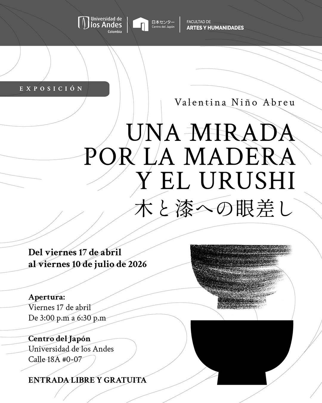 “Una mirada por la madera y el Urushi” es una exposición de artes en Bogotá que presenta el trabajo de la artista Valentina Niño Abreu en el Centro del Japón de la Universidad de los Andes. A través del torno en madera y el uso del urushi, una laca tradicional japonesa, la muestra invita a contemplar la huella del tiempo, la precisión del oficio artesanal y la vigencia de saberes ancestrales en el arte contemporáneo.