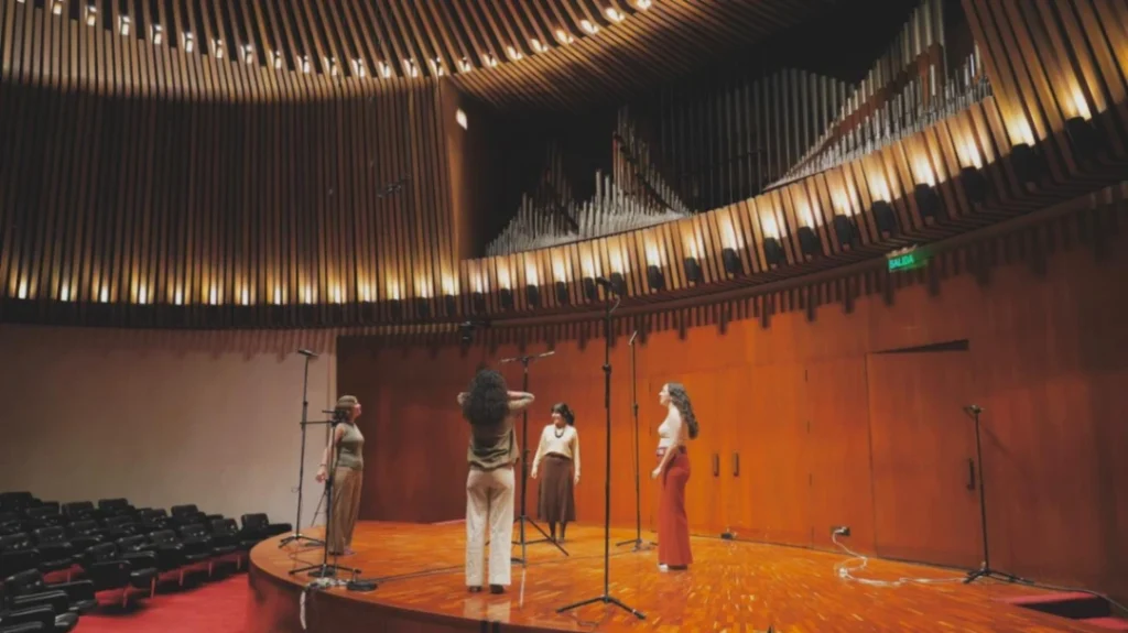 A través de la práctica de la música circular y la improvisación como lenguaje, su sonoridad se teje mediante la repetición y estructuras que se desenvuelven de manera orgánica – su sonoridad dialoga con el jazz vocal y la música coral.