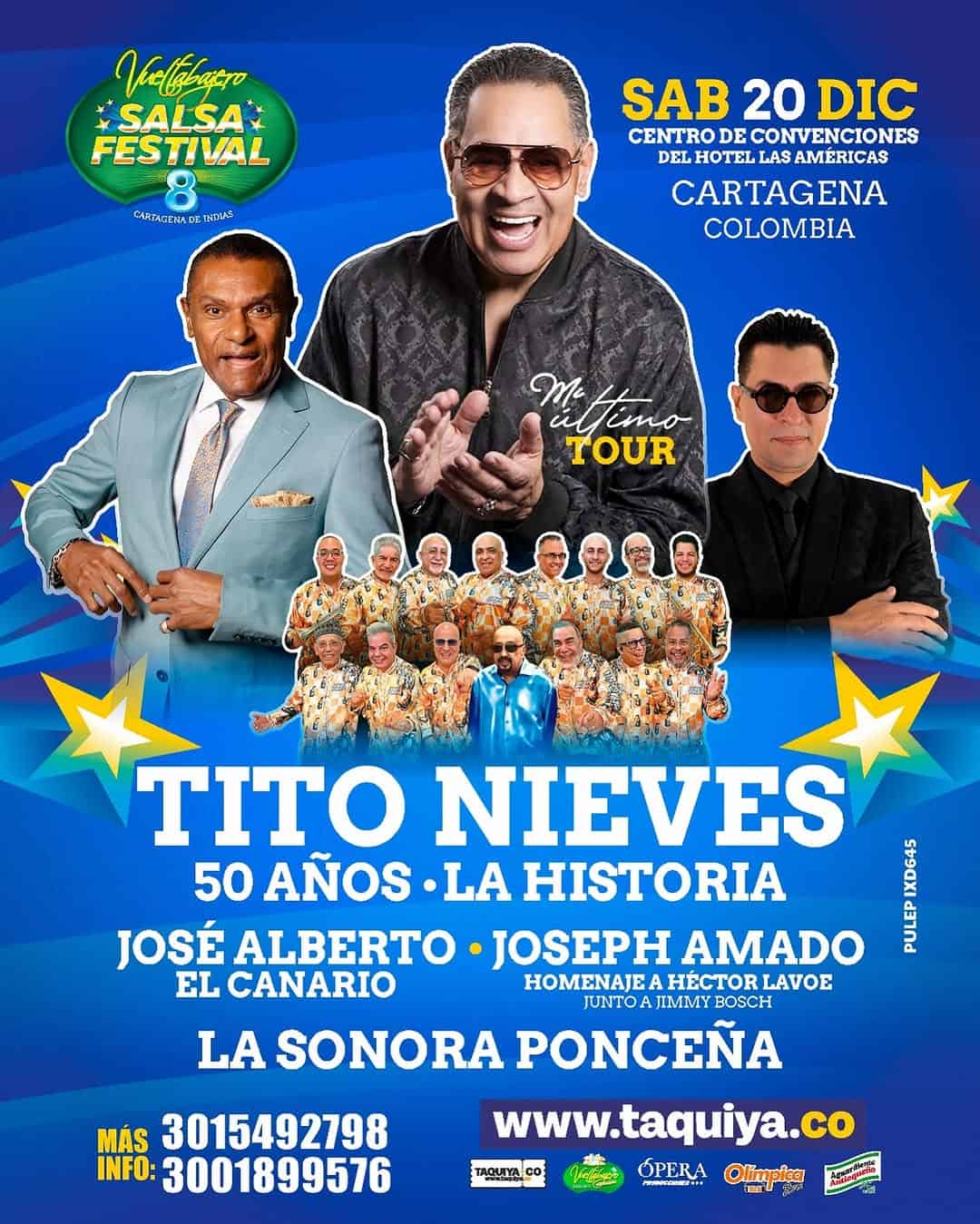 Prepárate para vivir una celebración sin igual en el Vueltabajero Salsa Festival 8 este 20 de diciembre en el Centro de Convenciones del Hotel Las Américas. Contaremos con la leyenda Tito Nieves, quien celebra 50 años de trayectoria musical, y una alineación estelar que incluye a José Alberto El Canario, Joseph Amado, y La Sonora Ponceña. El ambiente será festivo, lleno de buena salsa y energía, ideal para cerrar el año. No dejes pasar la oportunidad de disfrutar de esta experiencia musical única.