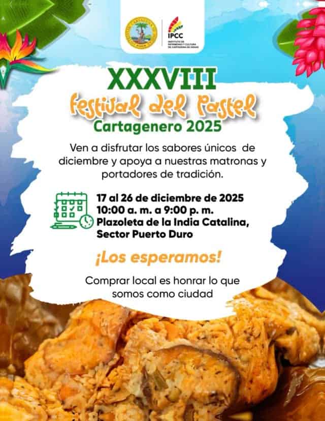 Celebra la Navidad con el sabor que solo Cartagena sabe preparar en el XXXVIII Festival del Pastel Cartagenero 2025. Este evento gastronómico, que se llevará a cabo en la Plazoleta de la India Catalina, es una fiesta de identidad, memoria y orgullo popular. Ven y apoya a nuestras matronas y portadores de tradición, porque comprar local es honrar lo que somos como ciudad. ¡Te esperamos para compartir y disfrutar de esta tradición viva!