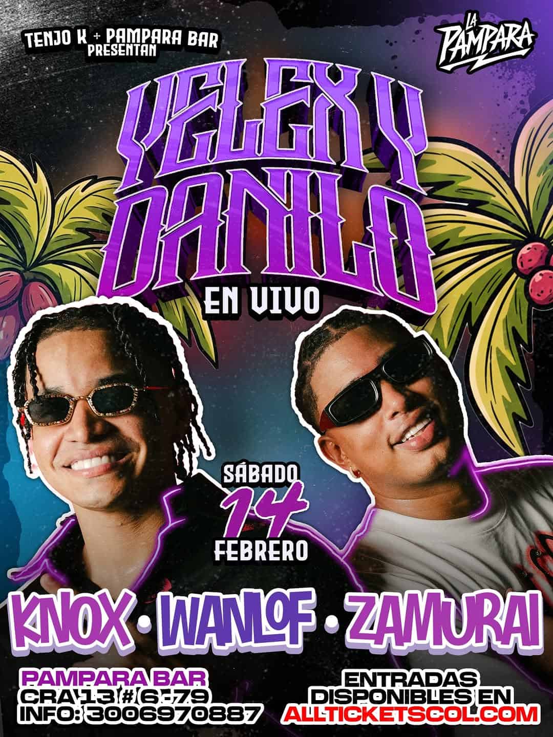 Yelex y Danilo En Vivo es un concierto urbano en La Pampara Bar, donde también se presentarán Knox, Iwanlof y Zamurai. Será una noche de reggaetón y sonidos urbanos pensada para quienes buscan rumba intensa y presentaciones en vivo de artistas emergentes. Este evento promete energía alta, ambiente de fiesta y una experiencia musical cercana con los talentos invitados en La Pampara Bar.