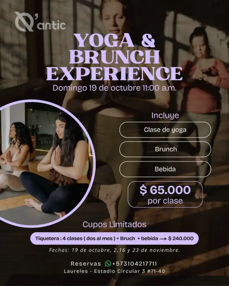 ¡Sumérgete en nuestro Yoga & Brunch Experience este domingo 19 de octubre a las 11:00 a.m. en Medellín!