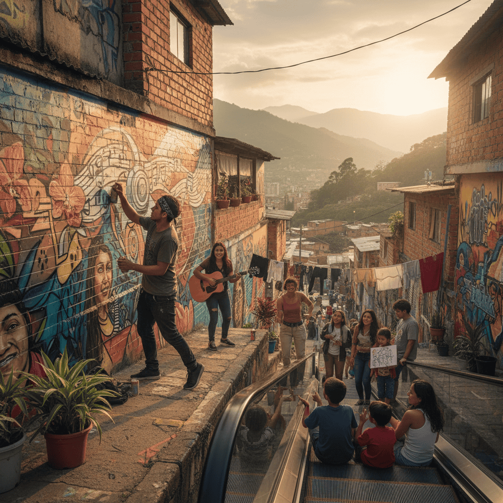 La Comuna 13 es un ejemplo vivo de cómo el territorio puede ser un catalizador de cambio. Lo que alguna vez fue un símbolo de violencia, hoy es un epicentro de arte y cultura, donde los jóvenes encuentran en el grafiti y la música una forma de narrar su propia historia.
