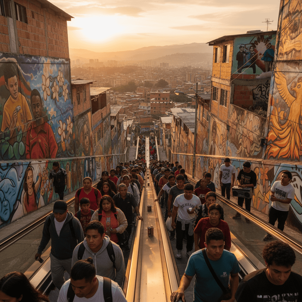 El territorio de Medellín es un lienzo en constante transformación. En la Comuna 13, las escaleras eléctricas no solo conectan físicamente a sus habitantes, sino que simbolizan el ascenso de una comunidad que ha sabido reinventarse. Este lugar, que alguna vez fue sinónimo de violencia, hoy es un ejemplo de cómo el territorio puede ser un protagonista de cambio.