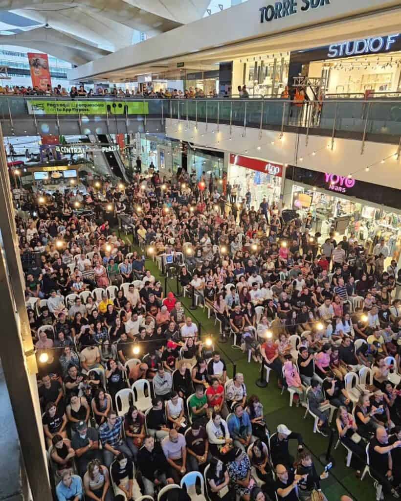 Centro comercial moderno con tiendas de ropa, un cine, un gimnasio, un casino y restaurantes.