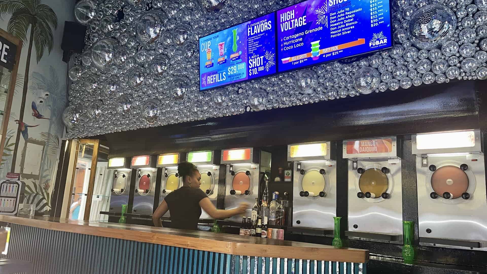 FUBAR CARTAGENA FROZEN COCKTAILS es un bar que se ha consolidado como un punto de encuentro para quienes buscan disfrutar de una experiencia refrescante en el corazón del centro histórico de Cartagena. Con un ambiente que combina modernidad y comodidad, atrae tanto a locales como a turistas que desean relajarse en un espacio accesible y amigable, donde la diversidad y la inclusión son parte de su esencia. Su propuesta se centra en ofrecer cócteles congelados y una cuidada selección de cervezas, creando un ambiente informal y acogedor para compartir en grupos o simplemente disfrutar de una tarde diferente.