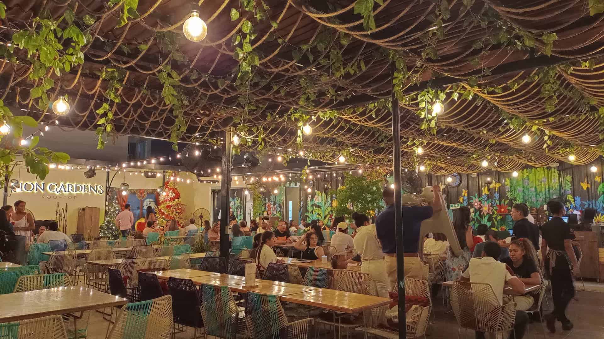 Sion Gardens rooftop es un espacio que combina la comodidad de un restaurante con la magia de una terraza en la azotea, ofreciendo un ambiente que invita a disfrutar de momentos tranquilos y agradables en compañía o en solitario. Su carácter informal y de moda atrae tanto a turistas como a locales que buscan un lugar para relajarse, compartir una buena comida o simplemente saborear un cóctel en un entorno diferente. La vista desde su espacio elevado y su ambiente acogedor hacen que cada visita sea una experiencia especial.