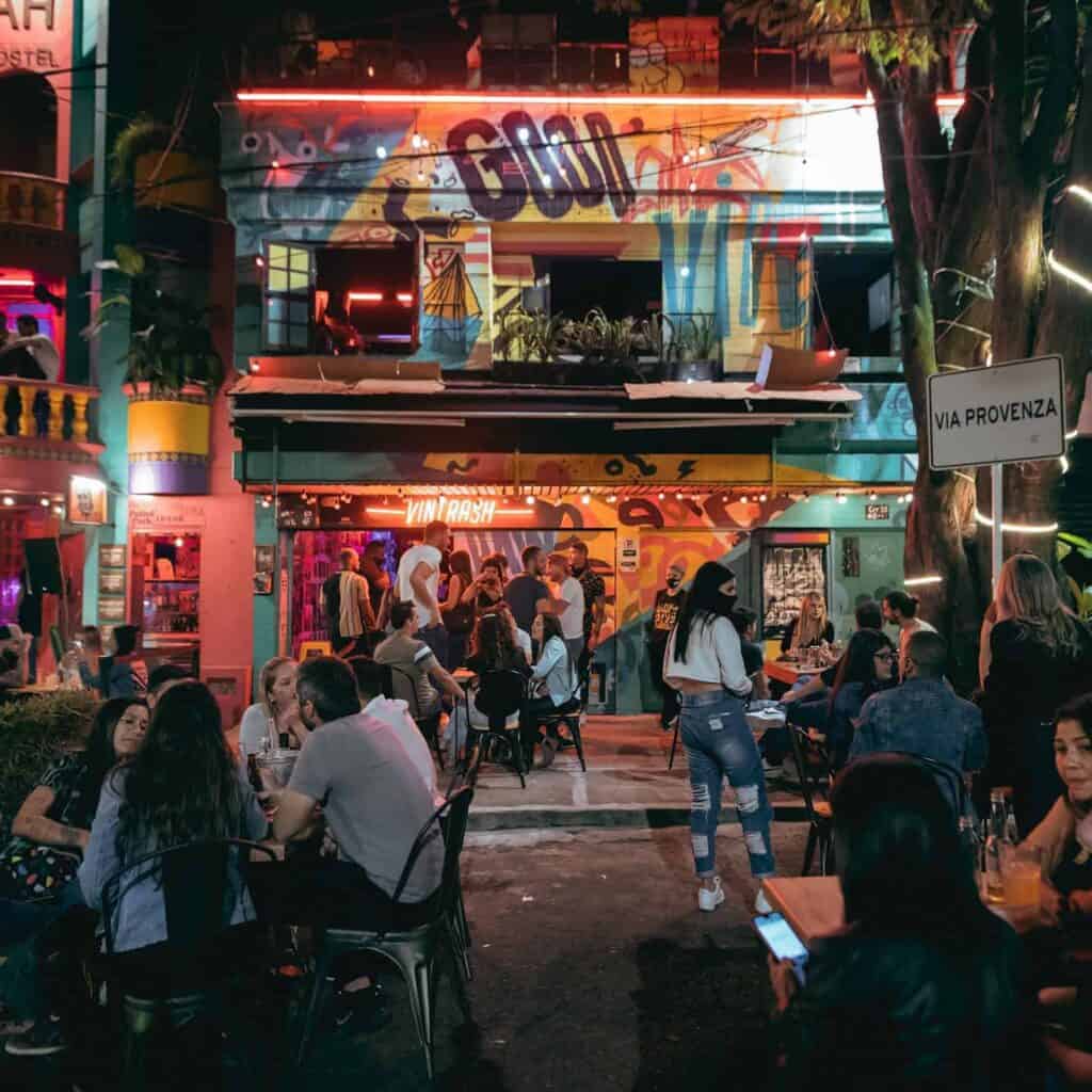 Vintrash es un bar que combina un ambiente moderno y relajado, ideal para quienes buscan disfrutar de una noche en buena compañía. Con una terraza y una azotea, ofrece espacios pensados para relajarse, conversar y bailar, atrayendo tanto a locales como a turistas que desean experimentar una propuesta diferente en Medellín. La decoración y el estilo del lugar reflejan una tendencia actual, creando un entorno informal y acogedor donde todos se sienten bienvenidos.