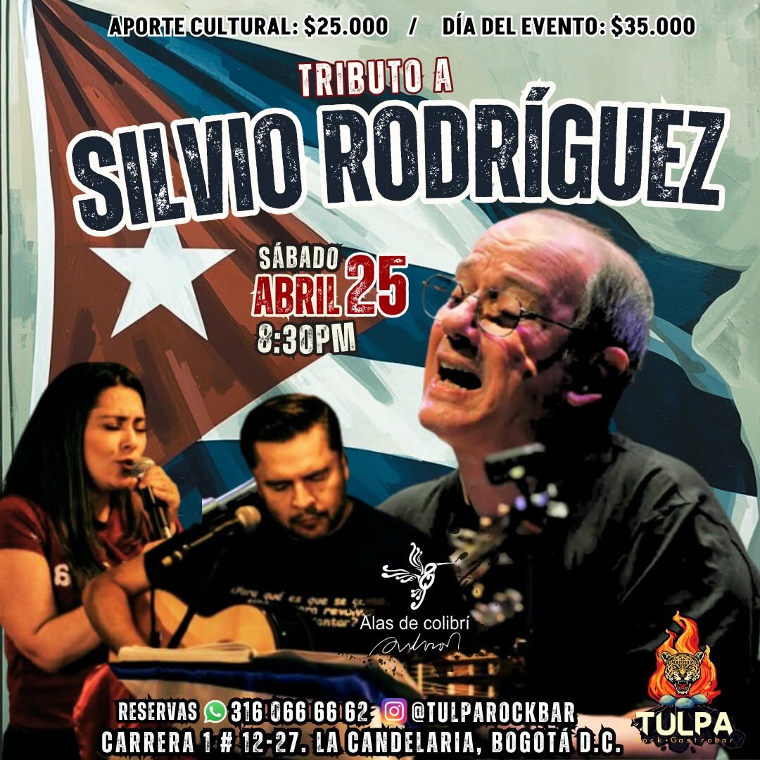 Tributo a Silvio Rodríguez es un concierto íntimo y cercano en Bogotá, donde la música del cantautor cubano cobra vida en vivo en Tulpa Rock Bar. Este tributo musical ofrece una experiencia acústica y emotiva para amantes de la trova y la canción de autor, con un ambiente acogedor, servicio a la mesa y un formato exclusivo ideal para disfrutar en pareja o con amigos.