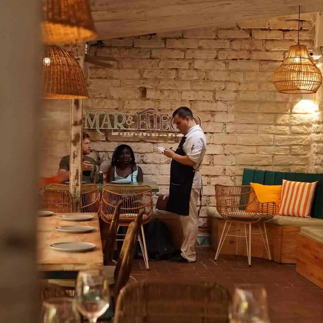 Mar y Fuego是一个独特的场所,您可以选择两种不同的氛围。一楼是酒吧小酒馆,二楼是美食餐厅。